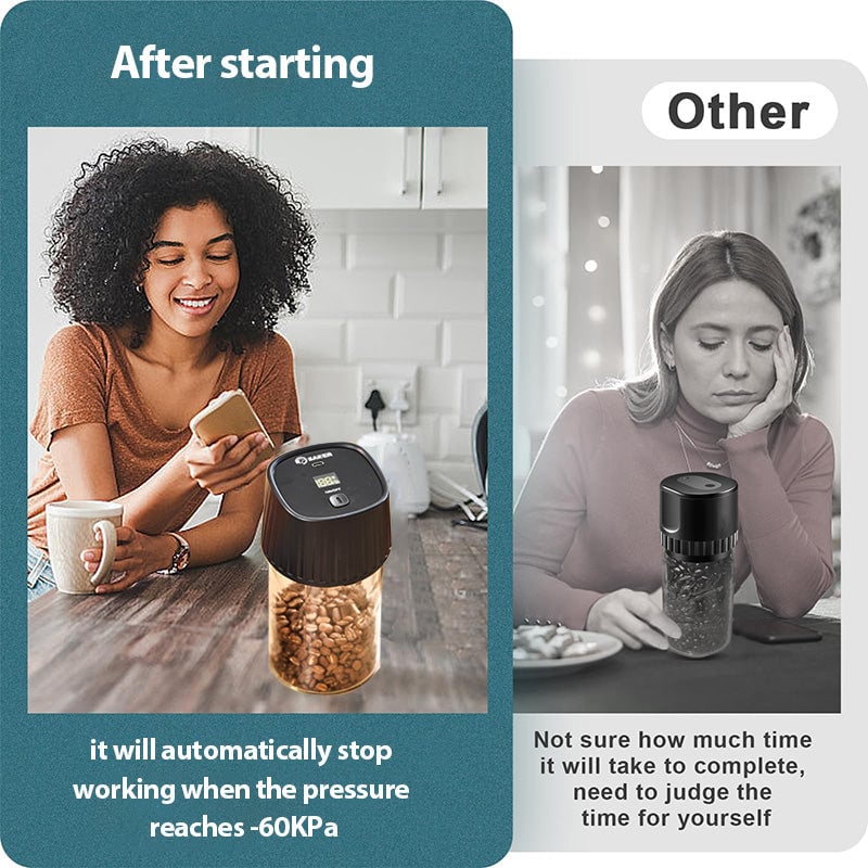 Smart Pressure Control: The Saker Electric Mason Jar Vacuum Sealer Kit automatically halts operation once it reaches a pressure of -60KPa, ensuring optimal sealing without the guesswork. Unlike other models, you won't have to estimate when your jars are sealed; our advanced technology takes care of it for you.