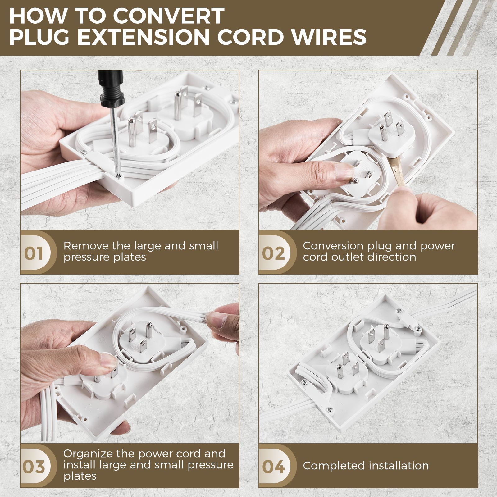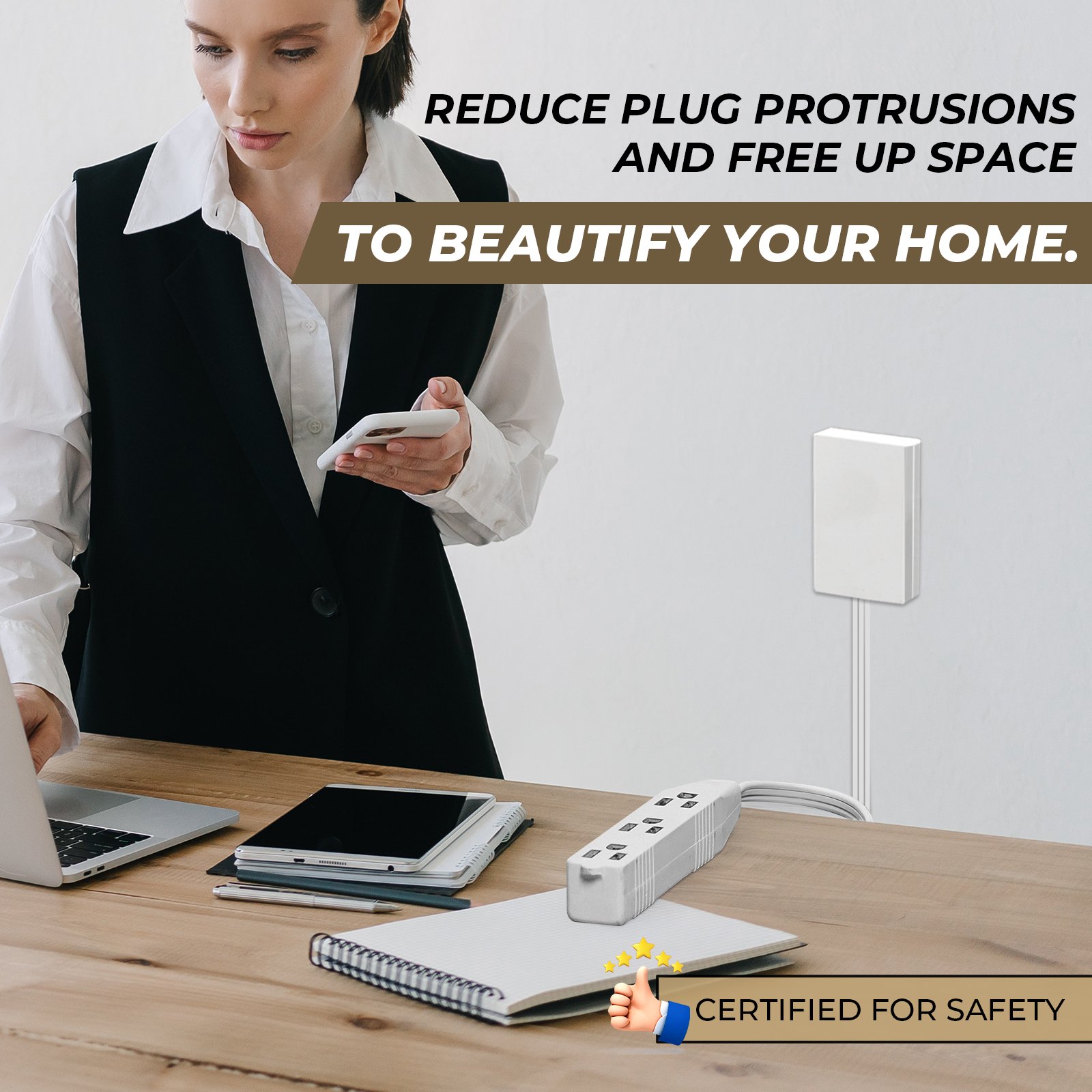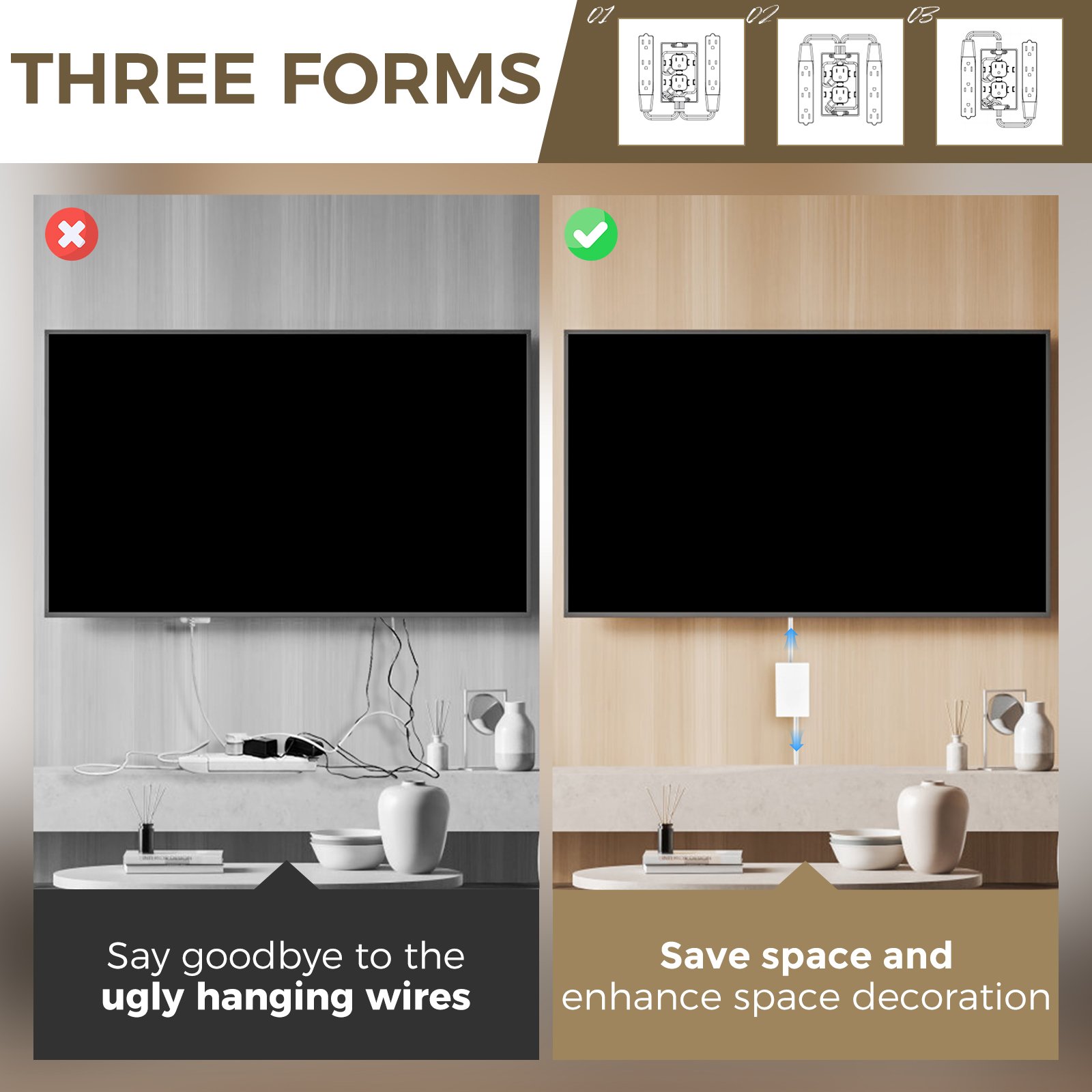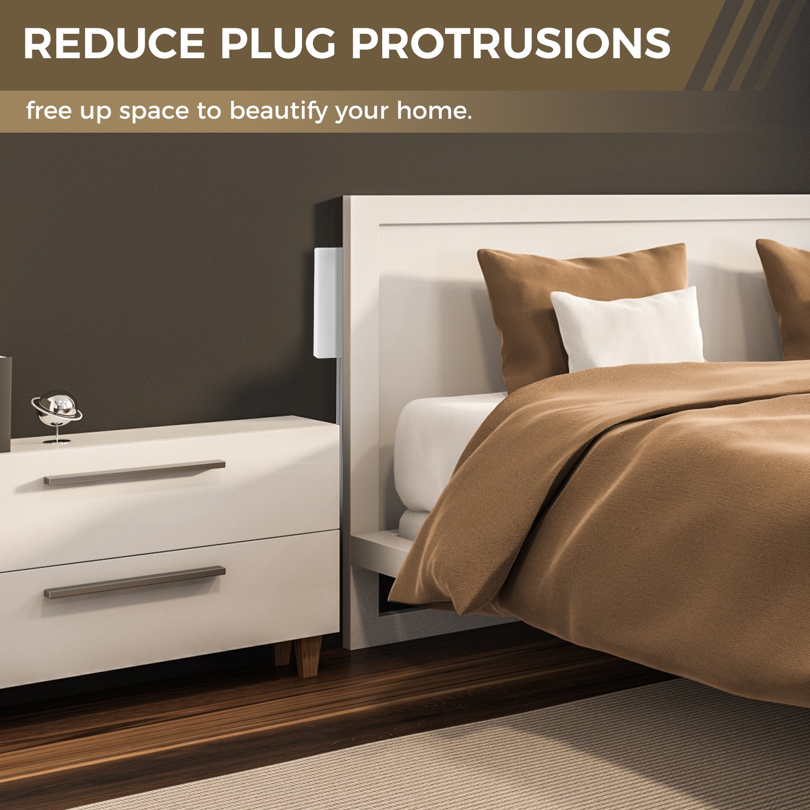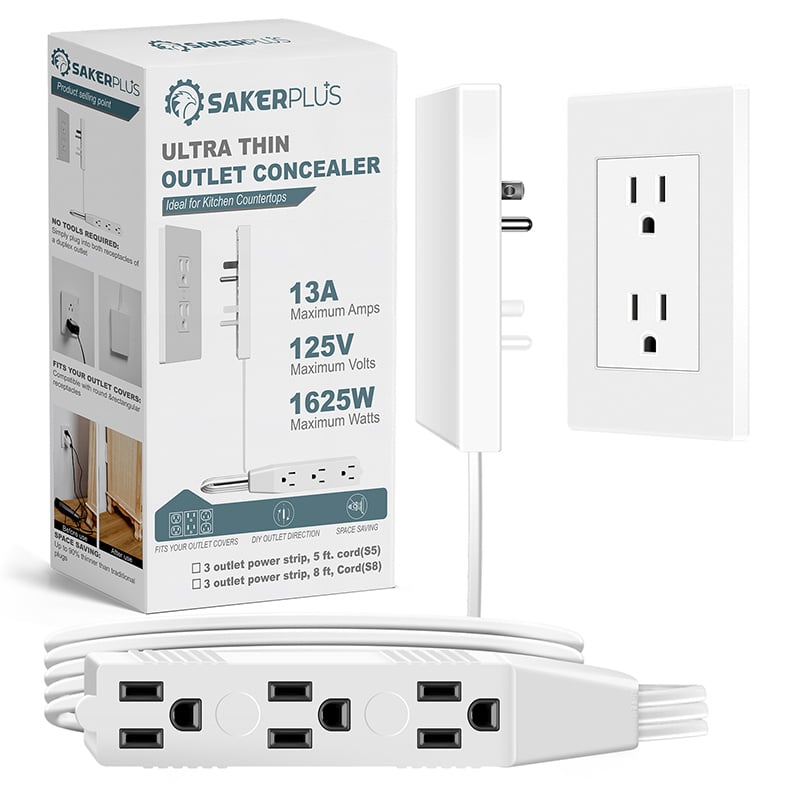 Conceals Outlets: Ultra-thin concealed style, allowing you to cleverly hide entire outlets, unsightly plugs and cords while enhancing your home decor.