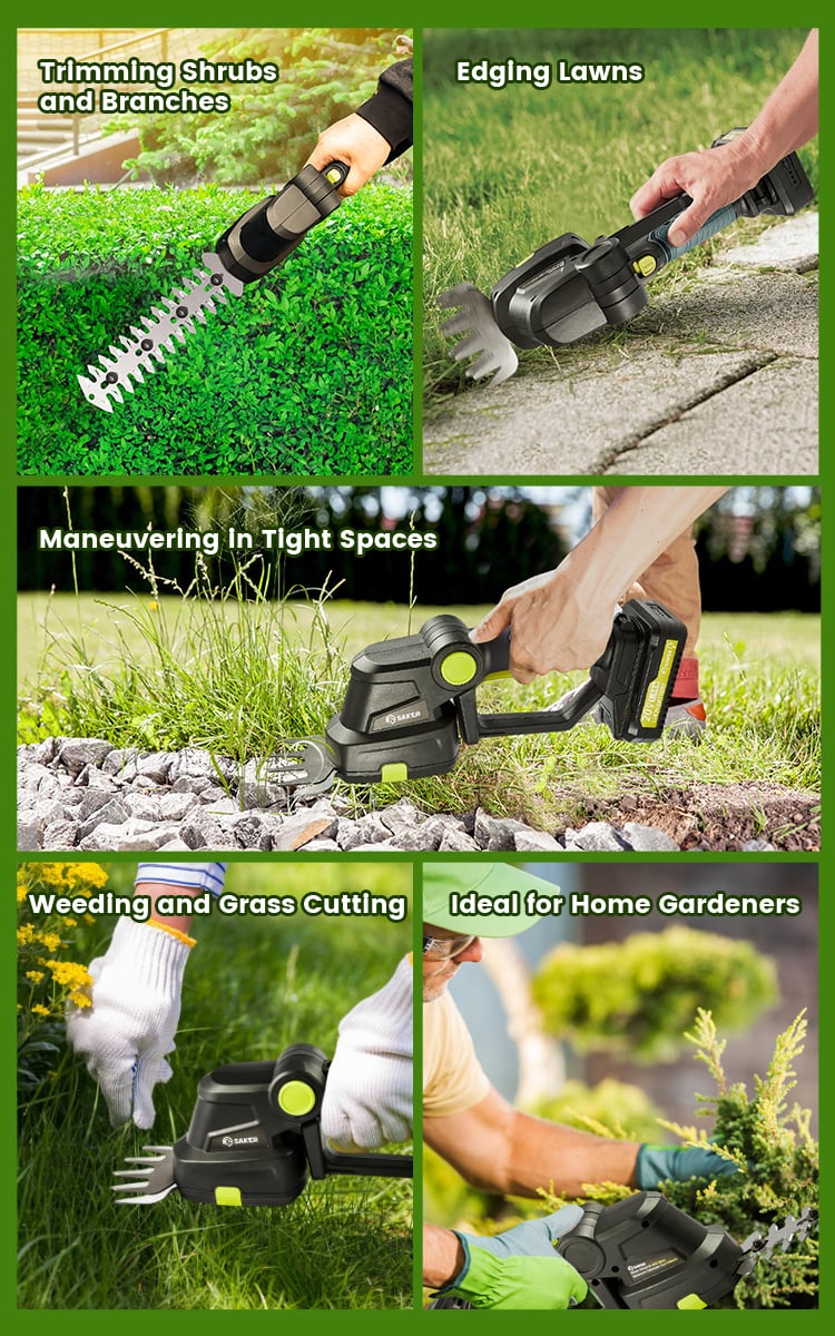 Our trimmer is equipped with a 20V 2000mAh cordless tool battery, which can be used for a long time. Charging at any time, is convenient and fast. Its charging system turns off when the battery reaches full capacity.