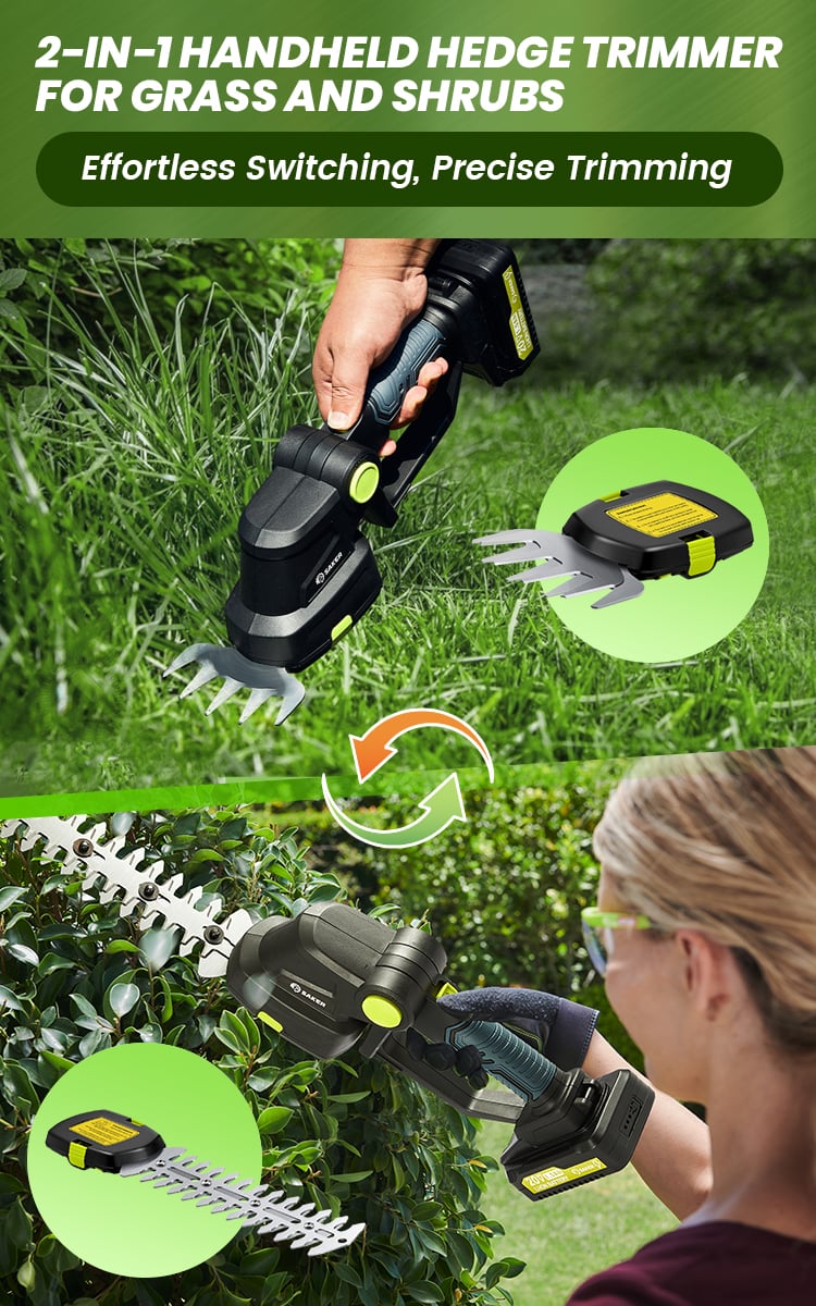 Features 2-in-1 interchangeable long and short blades for versatile trimming. Most traditional and gas models only have a single blade type.