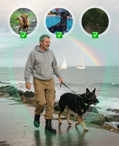 Absolutely. The pendant is waterproof and weather-resistant, so it won’t lose effectiveness if your dog goes for a swim, plays in the rain, or rolls around in the mud. It's built to keep working in all kinds of outdoor conditions.