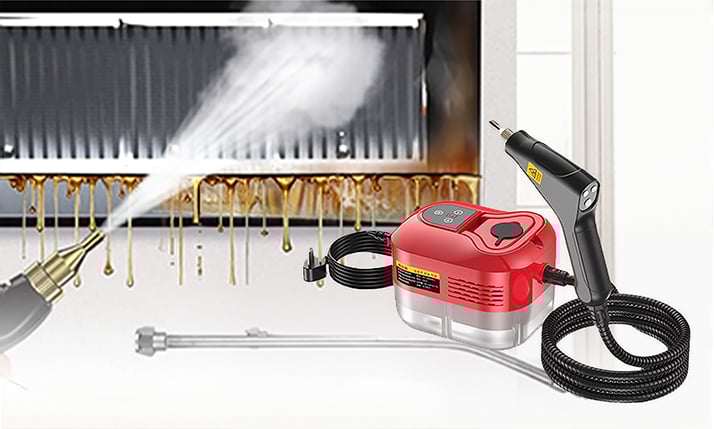 High-pressure steam cuts through grease & grime