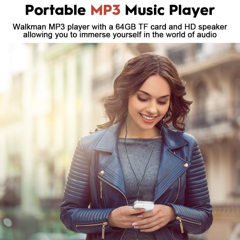 - Portable mp3 music player: Walkman MP3 player with Bluetooth and camera, built-in a 64GB TF card to store thousands of songs, photos, e-books, etc., allowing you to immerse yourself in the world of audio. With high-fidelity speaker, multiple playback modes and EQ sound effects, enjoy crystal-clear audio. Or enjoy your private music by plugging in earphones without affecting others. It's also compatible with various audio formats such as MP3, WMA, FLAC, APE, and OGG.