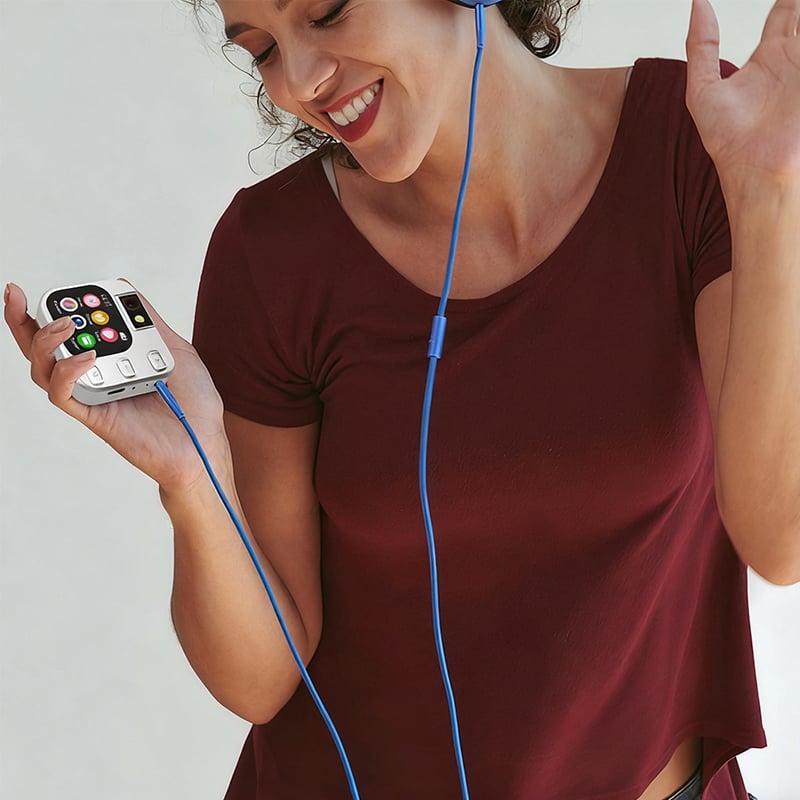- Multifunctional music player: Bluetooth Walkman features music playback, voice recording, eBook, A-B repeat, photo taking, timed shutdown, calculator, FM radio, calendar and more. It has independent volume keys, camera button and power switch for easy operation. Small enough and lightweight, it fits easily in your pocket for immersive music and video enjoyment on the go.
